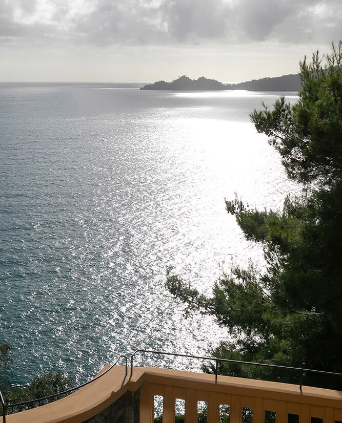 A clifftop hideaway with a sumptuous style combining richly detailed Art Deco glamour and contemporary design, with views -from every level of the villa stretching across the Gulf of Tigullio to Portofino, making the cobalt Ligurian sea a constant, soothing backdrop to every stay.